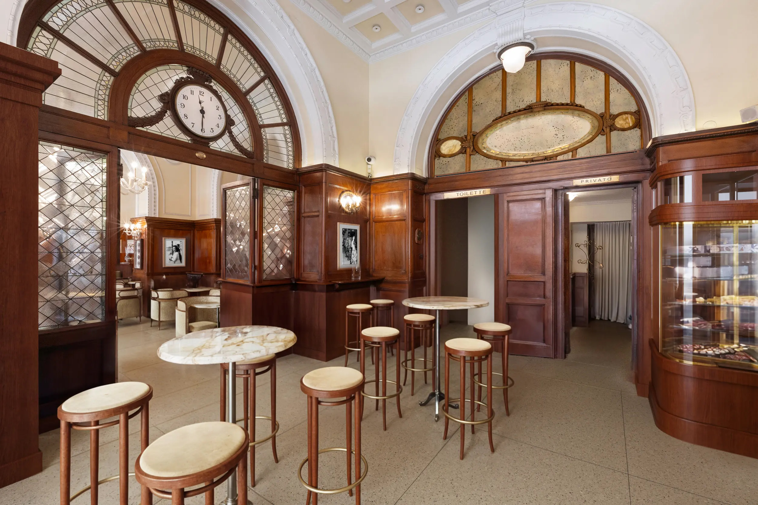 Rendering su base fotografica per reinterpretare gli interni dello storico Caffè GILLI, Piazza della Repubblica, Firenze. Un nuovo layout firmato dall’architetto Paolo Becagli, capace di preservare la storicità dell’ambiente e, al contempo, di rinnovare arredi, pavimenti e sala da tè con raffinata continuità estetica. / Photographic-based rendering reimagining the historic Caffè GILLI in Florence, with architect Paolo Becagli’s layout preserving its heritage while elegantly updating furnishings, flooring, and the tea room.